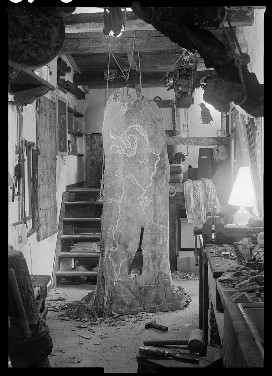 Mattia Ruggeri, Working on the Tree (self portrait), from negative film 13x18 cm, 1999